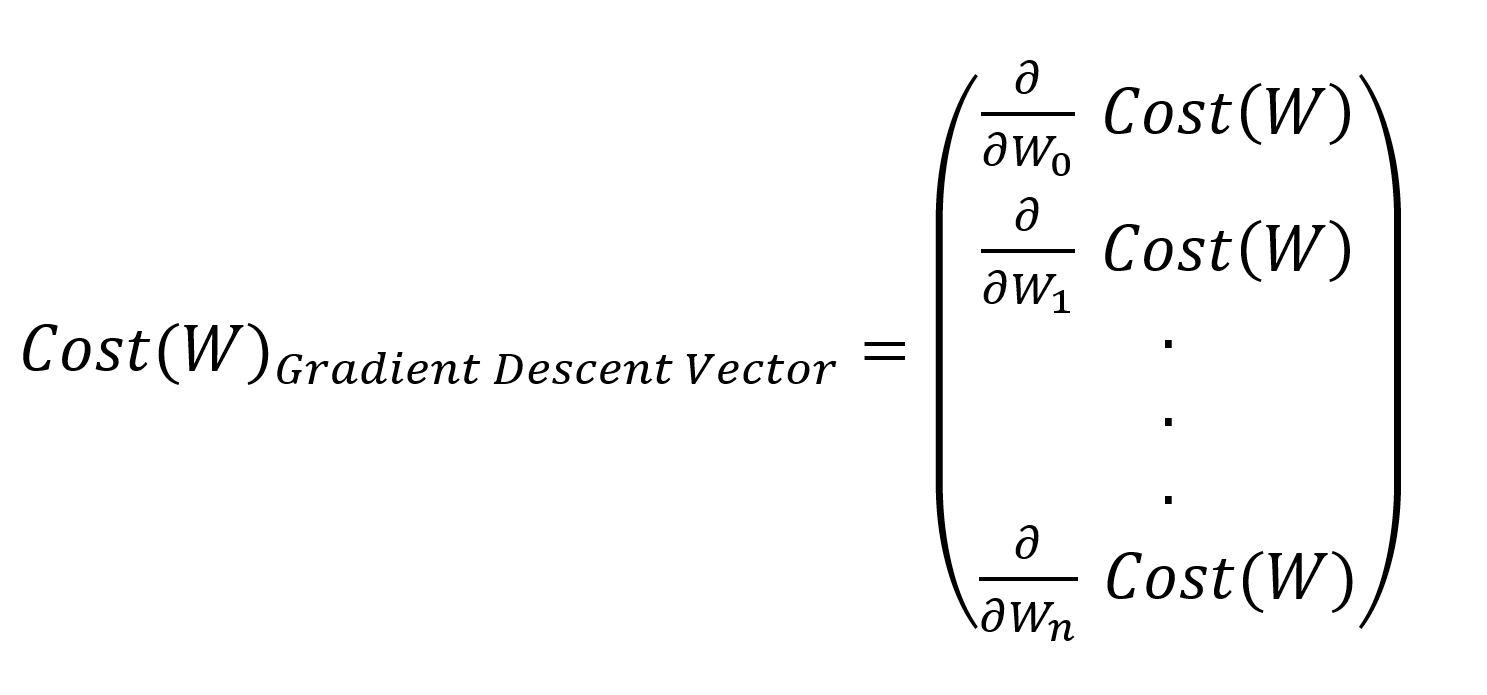 Gradient Descent Vector도 정의하여 위의 그림과 같이 가중치를 업데이트해나가면 모델은 최적해를 찾아낼 것입니다.