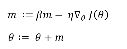 m을 그래디언트 벡터로 업데이트하고, 업데이트된 m으로 가중치를 업데이트하는 방식입니다.