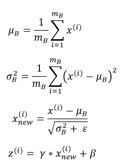 배치 정규화의 과정을 수식으로 정리하여 보겠습니다.