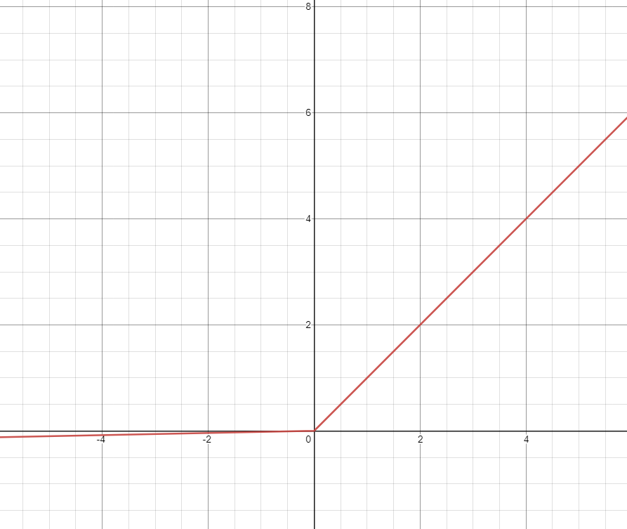위 사진은 LeakyReLU 함수의 그래프 개형입니다.