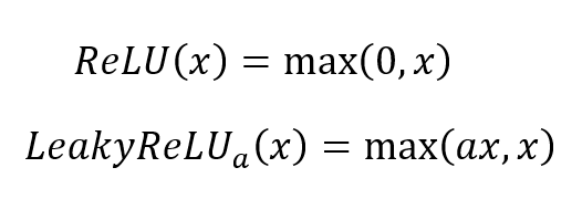 ReLU와 LeakyReLU 함수식을 보면 다음과 같습니다.