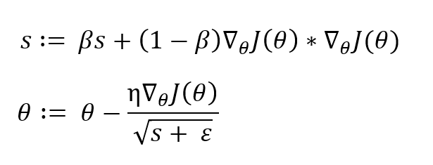 RMSProp은 모멘텀 최적화와 반대로 가중치 업데이트를 점점 낮춥니다.